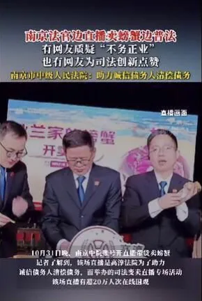 高淳法院为诚信债务人直播卖蟹,舆论场呈现两极:一端点赞“能动司法”,一端担忧“角色越界”。