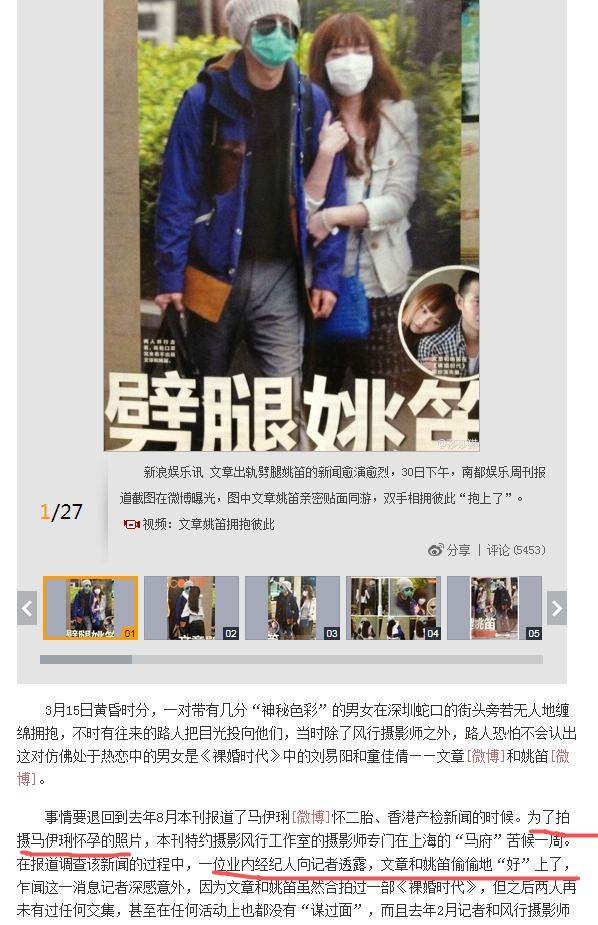 02 从云端跌落的事业文章事业的转折点在2014年到来,当时马伊琍正怀着二胎。文章与姚笛的亲密照片被曝光,“周一见”成为轰动娱乐圈的事件。