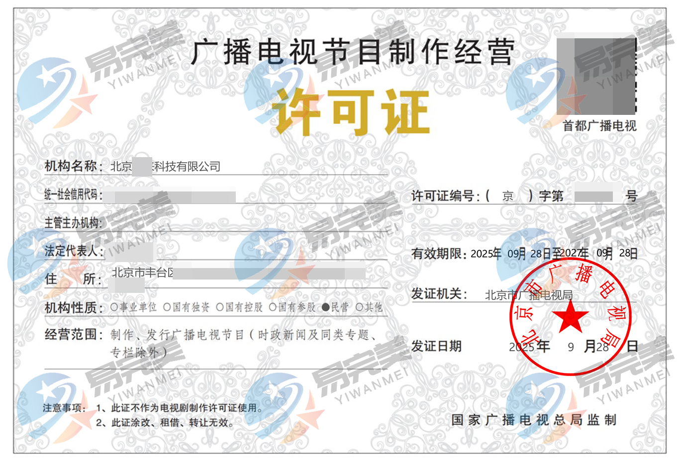 北京新下2025年09月28日广播电视节目制作经营许可证