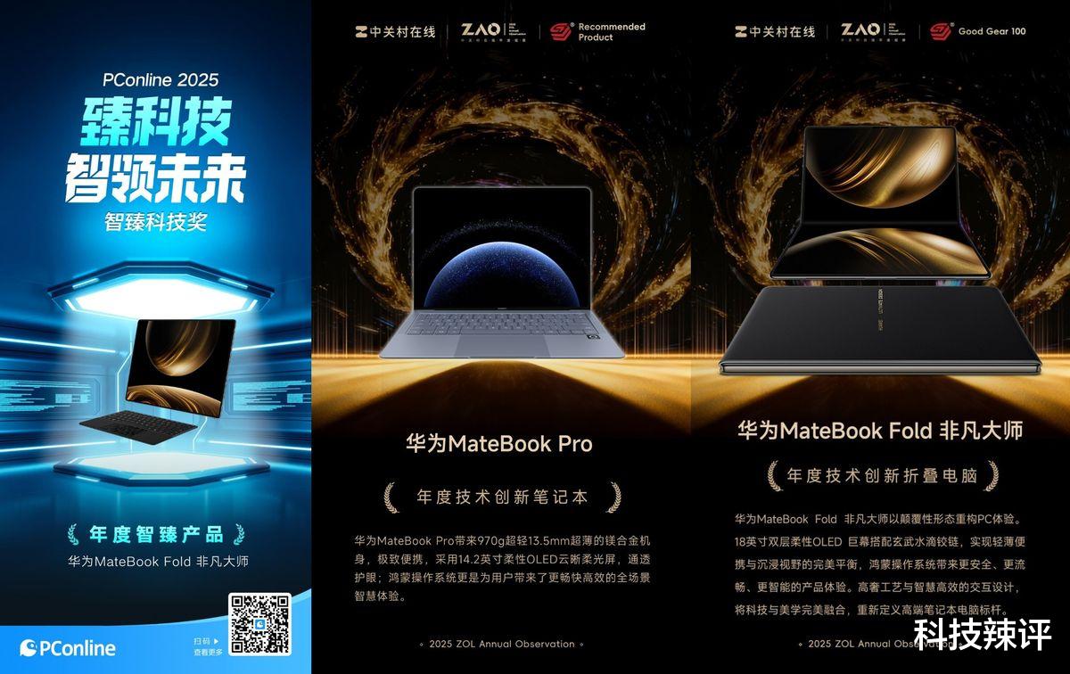 正是得益于出色的表现,鸿蒙电脑获得多家媒体年度大奖。华为MateBook Fold 非凡大师斩获太平洋科技“年度智臻产品”、中关村“年度技术创新折叠电脑”两项大奖。18寸双层柔性OLED屏幕搭配玄武水滴铰链,为用户带来极致轻薄巨屏体验,颠覆PC行业传统形态。华为MateBook Pro斩获中关村“年度技术创新笔记本”大奖,970克极致轻薄重量,14.2英寸柔性OLED云晰柔光屏带来极致全场景办公体验,受到媒体高度认可。