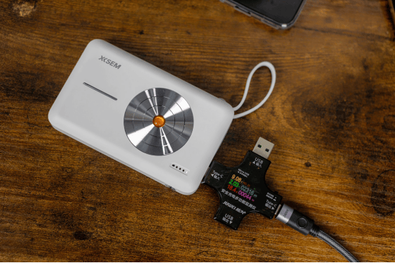 内置USB-C口支持输入输出,配合自带的三倍加粗加密铜芯线,兼容Lightning与Type-C接口,减少额外携带线材的麻烦。在实际使用中,即便连续快充,机身温度有所上升,但可接受范围内。