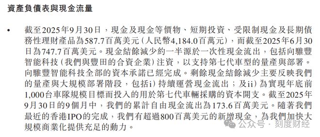 轻资产模式对小马智行的核心吸引力,在于其能破解重资产扩张的资本死局,毕竟,持有10万台车辆的成本,对初创公司而言很难承担。即便在1000辆车队以内自营的情况下,小马智行2025年前三季度自由现金流出1.736亿美元,经营活动现金流持续为负。