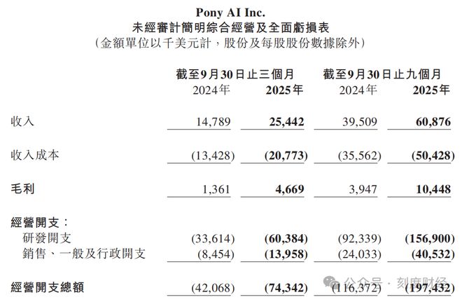 从公司整体盈利来看,财报数据显示,2025年三季度小马智行净亏损达4.38亿元,同比扩大46.3%,研发费用高达4.3亿元,占营收比例超230%。