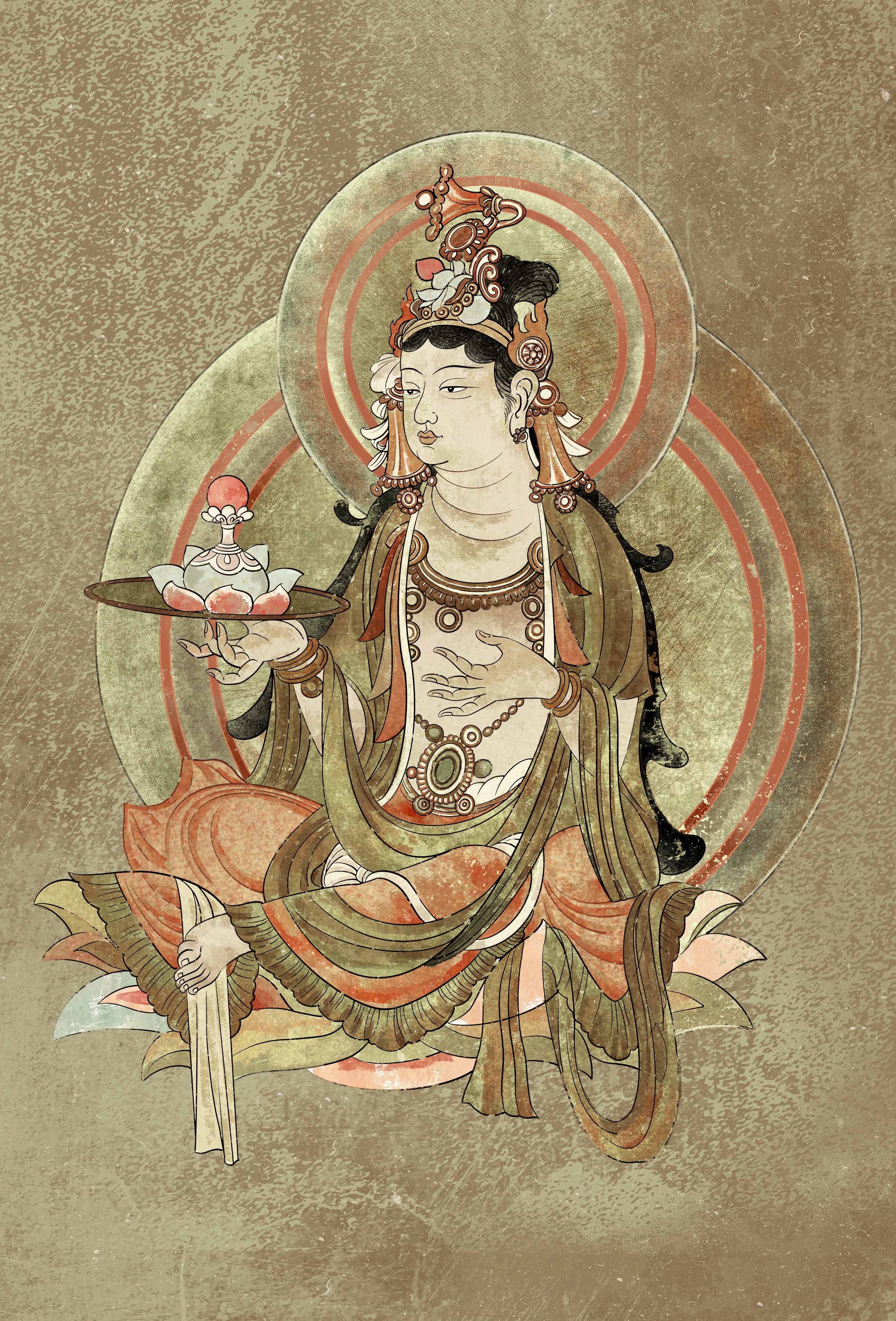 在唐代的“经变画”里(就是描绘佛国世界的画),你会看到:佛陀位于画面中央,背后有光环,左右有弟子、神将护卫。宫殿楼阁整齐排列,前面有桥有池,下面有乐舞表演,上面有飞天盘旋飞舞。这些画面其实也反映了唐代的皇家秩序和等级观念,可以说是“用佛国世界来表现人间权力”。