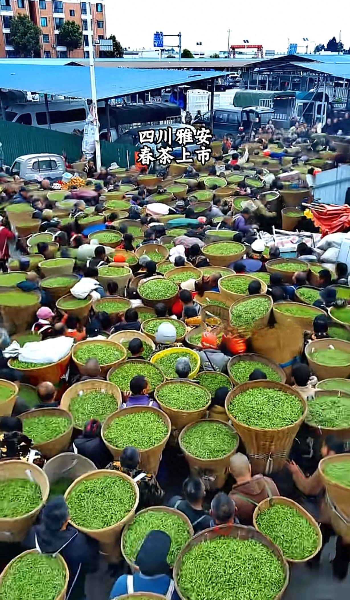 春日里的四川雅安,迎来了一年一度的春茶上市旺季。从图片中可以看到,交易市场里人头攒动,茶农们背着装满嫩绿茶芽的竹篓,将刚采摘的鲜叶汇聚于此,一筐筐新茶堆成了绿色的海洋,询价、称重、议价的声音此起彼伏,全国各地的茶商纷纷赶来抢“鲜”收购,现场一派产销两旺的火热景象。