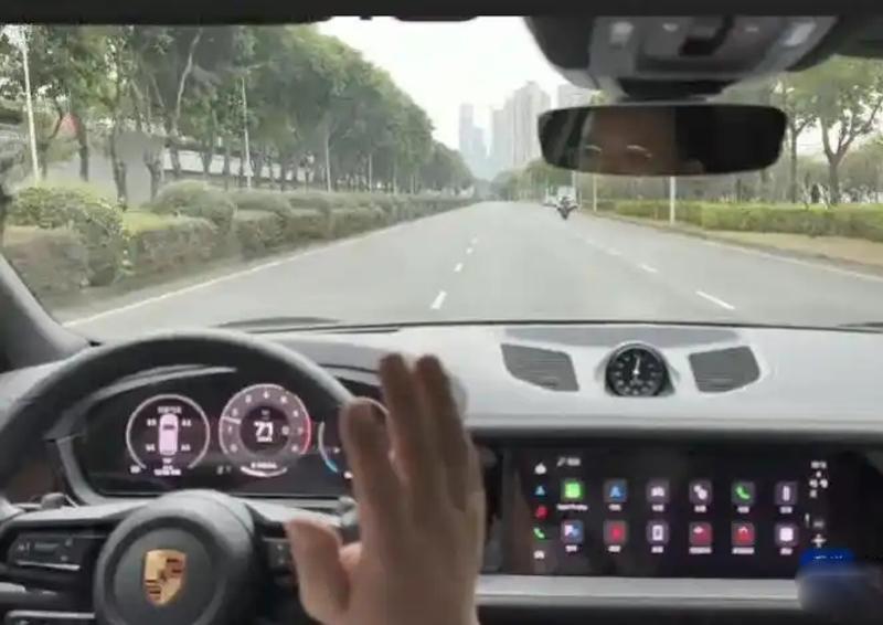 随后何先生驱车来到保时捷技术人员测试车辆的同一条道路,记者开启试驾体验。车辆稳定行驶后,记者尝试松开双手,方向盘立刻被一股无形力量拽向右侧,偏转幅度约5度,车头径直向右偏移。车速接近50公里/小时,不到3秒就完成变道;车速升至70公里/小时,5秒内连续跨两个车道,惊险程度让拥有十余年驾龄的记者惊出冷汗;而坐在副驾的何先生则全程神经紧绷,“副驾没法控制方向,比自己开车更恐怖”。记者多次重复试驾,跑偏故障次次重现。