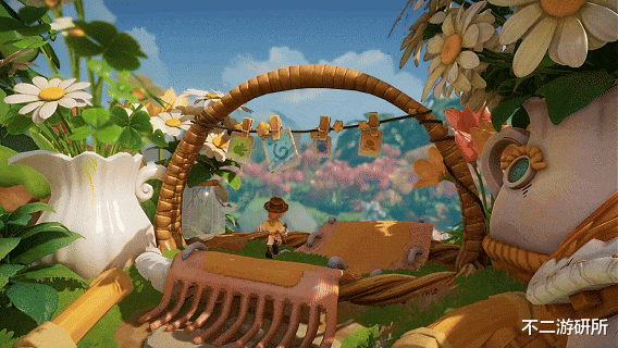 除了独特的小人国世界观,更抓人眼球的还有它的美术风格。类皮克斯绘本风搭配软糯温暖的色调,带来一种温润美好的即视感。花海、溪流、枯木区域等场景,光影层次舒适自然,让人一眼就有想截图的冲动。它不是一味追求画面精细度,而是营造出一种亲近、温柔、带陪伴感的视觉体验。再加上粒粒一路陪你逛世界、过生活,这种治愈感会让人更想深入探索。