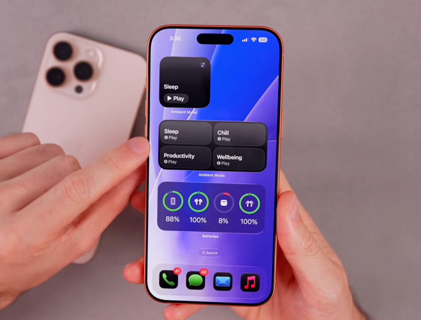 新增的 Ambient Music 小组件支持锁屏和主屏直接播放原生环境音,强调专注与睡眠场景。提醒事项增加“紧急”分类,触发更强提醒机制。