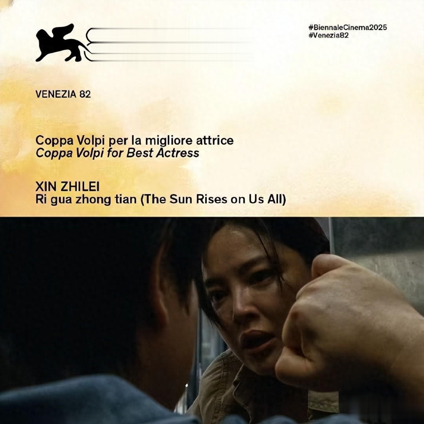 威尼斯电影节颁奖典礼现场,辛芷蕾凭借《日掛中天》拿下主竞赛单元,最佳女主角奖项。也就是广为大家所知的威尼斯影后!