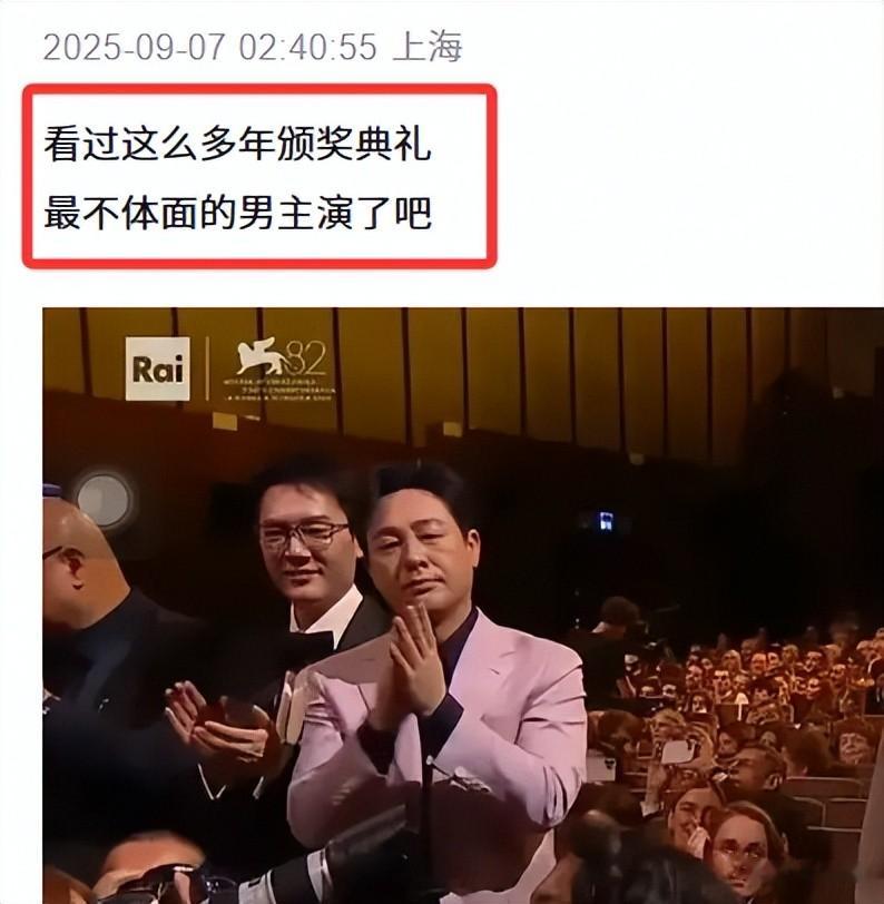 更是引得网友截图评价,看过这么多年颁奖典礼,最不体面的男主角了吧?