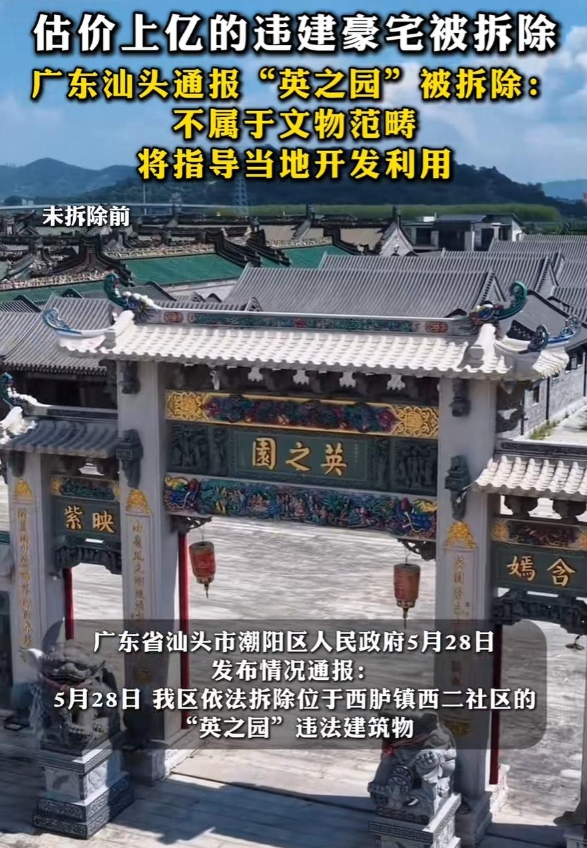 2025 年 5 月,“英之园”风波成为众人关注的焦点,其清拆工作基本宣告结束。这一造价高达 1.14 亿、占地 57 余亩的庞大建筑,从 2013 年开始建设,历经 12 年,承载着太多的争议。