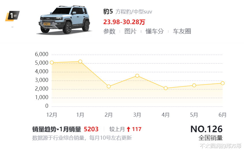 所以豹5上市时的热度非常高,今年年初的月销量高达5000多台,不过豹5的竞争对手太多太强,前有坦克400新能源、捷途旅行者、捷途山海T2等等,后面又来了一个深蓝G318。