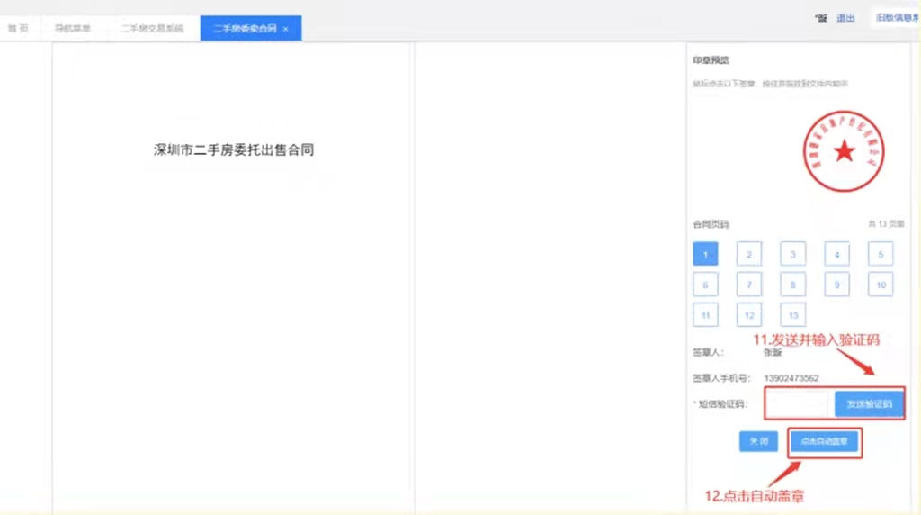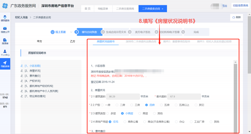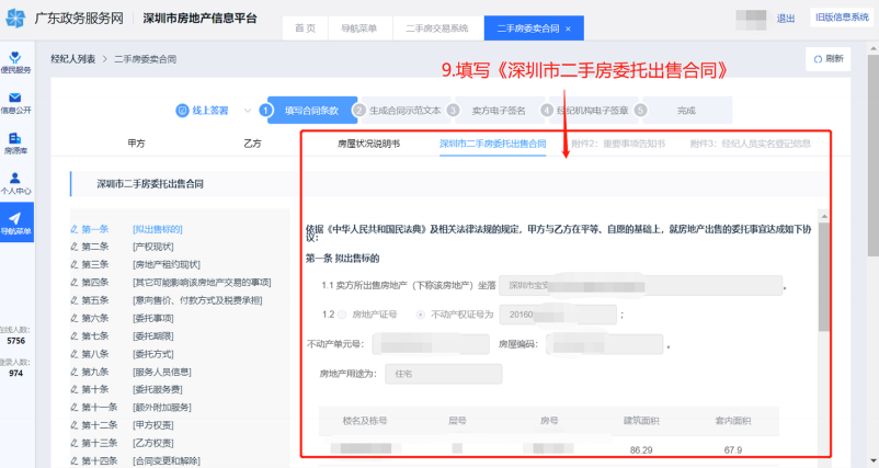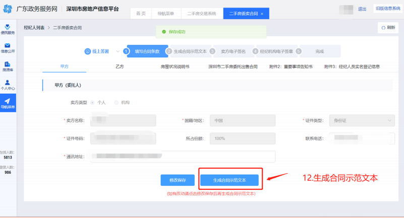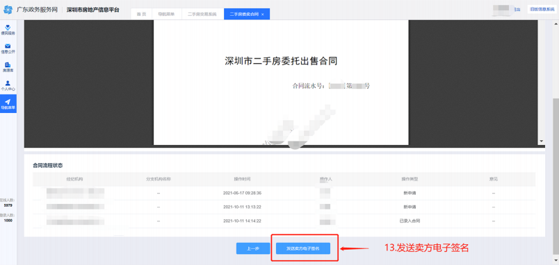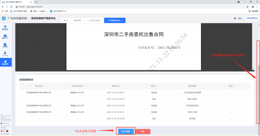 二、经纪人填写生成合同登录深圳市房地产信息平台,操作过程如下图: