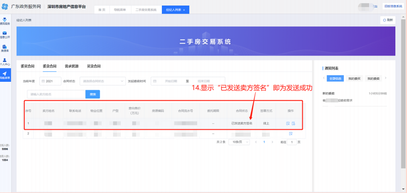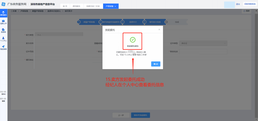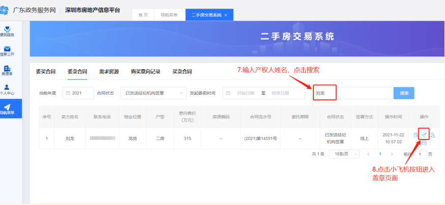 一、卖家发起委托需求登录深圳市房地产信息平台,操作过程如下图: