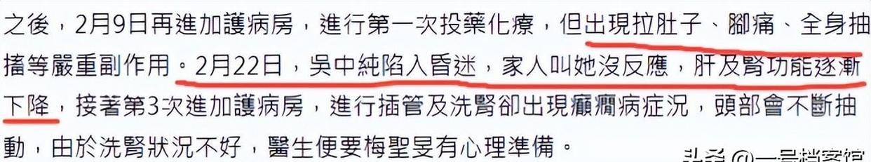 这种情况一直持续到前几天,身体状况跌到很差,甚至陷入了昏迷,那时候的吴中纯,其实已经在濒临死亡的边缘了。