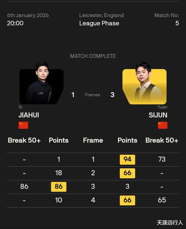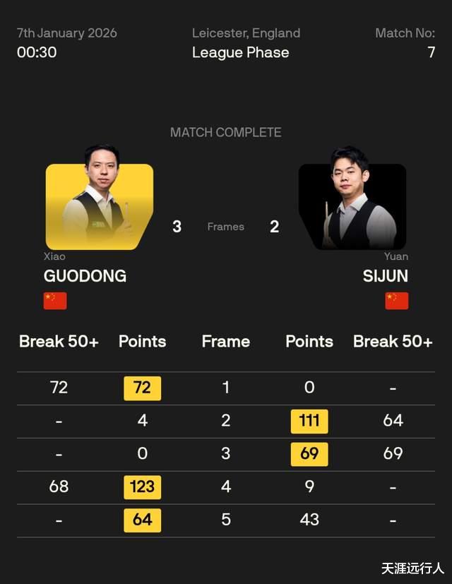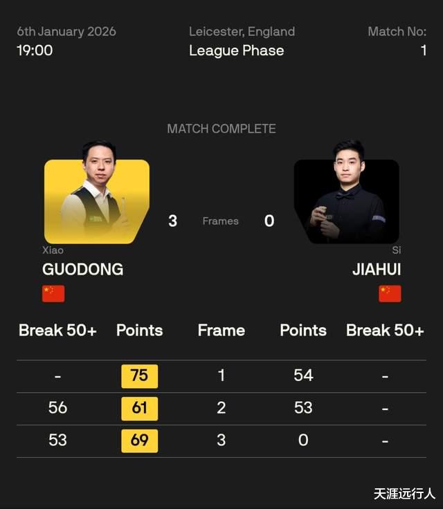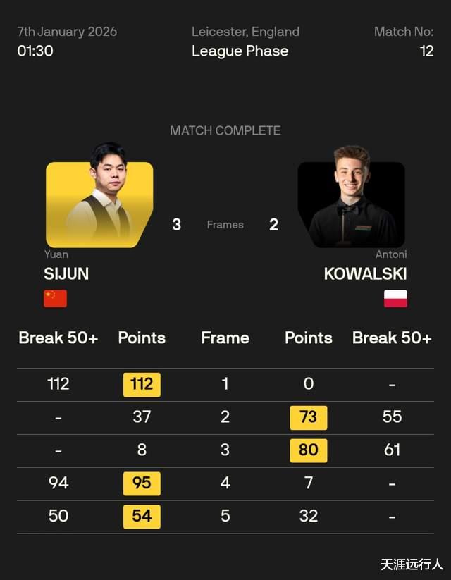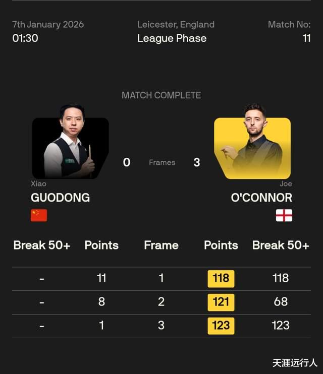 北京时间1月7日凌晨5时26分,2026斯诺克冠军联赛邀请赛版第三小组第一比赛日的12场角逐,全部决出了胜负。