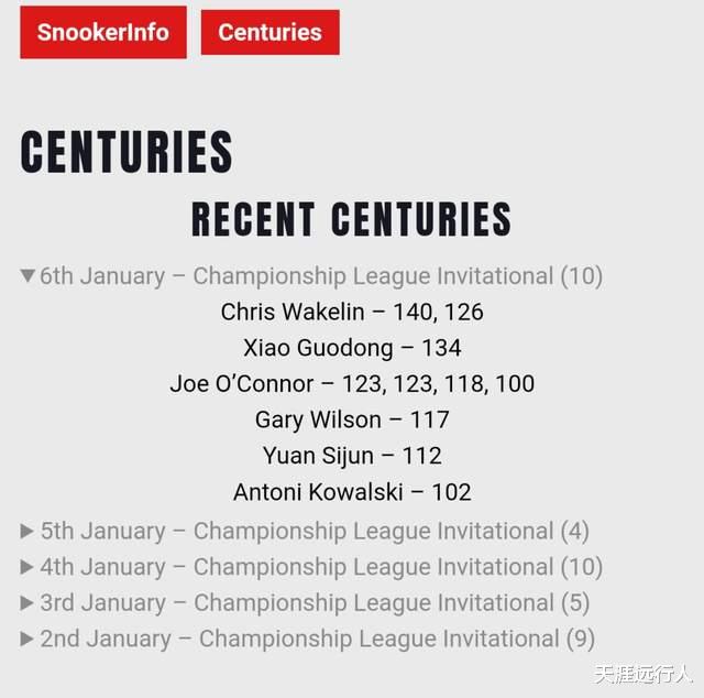 这个比赛日共打出十杆破百,克里斯·韦克林打出两杆,他此前两组比赛只打了一杆破百,虽然是一杆147满分杆,却也只拿到500块奖金,很是悲催;乔·奥康纳初心仍在,再轰四杆破百,本届赛会已打出11杆单杆过百,继续保有冲击杰克琼斯单届赛事32杆破百杆数纪录的希望。