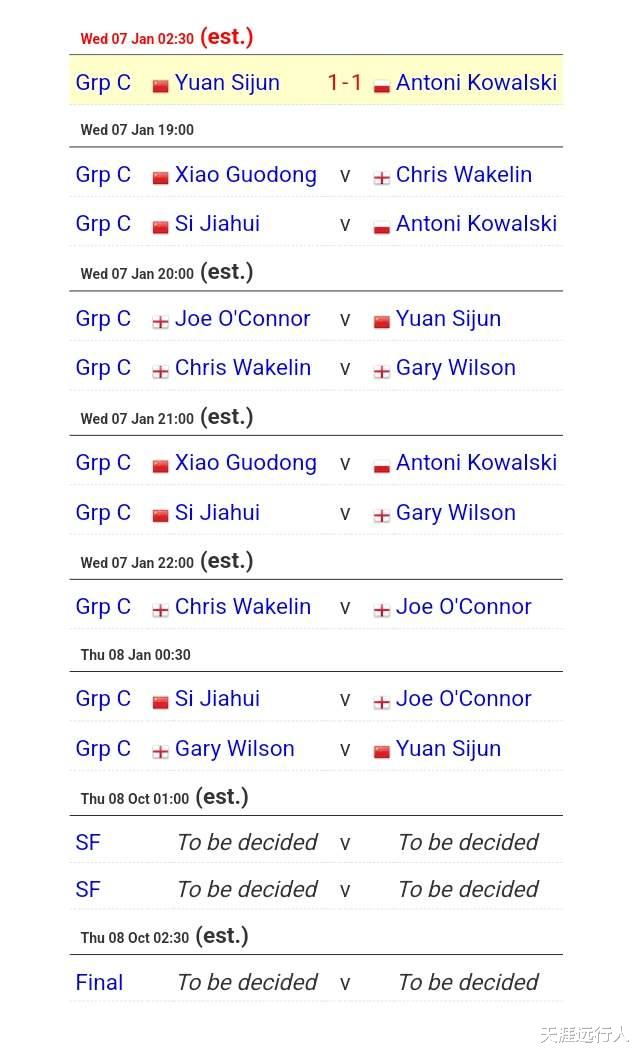 加里·威尔逊和克里斯·韦克林都是三战一胜两负,分列小组第四、五。