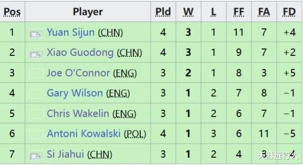 首个比赛日战罢,袁思俊、肖国栋同为三胜一负,小袁多赢了两局,暂居小组第一。