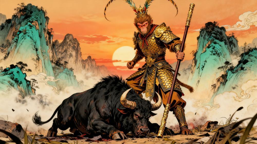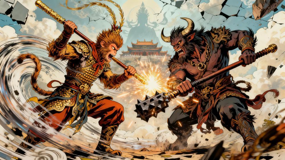 这场跨越千年的对决,从来不是两个妖怪的打架,而是两种人生的较量。它在告诉我们:所谓成长,就是不断和心里的“牛魔王”告别,然后活成自己的“孙悟空”—— 哪怕手里只有一根金箍棒,也要敢去撞开整个世界。