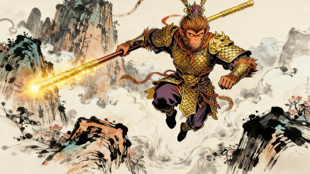 孙悟空的本事,是菩提祖师在灵台方寸山“私教” 的:七十二般变化能躲三灾利害,筋斗云一日十万八千里能跨三界疆域,金箍棒是东海龙宫的定海神针,重一万三千五百斤,“幌一幌碗来粗细”,劈山能断峰,击水能逆浪。原著里写他刚下山时,“闯龙宫、闹地府、强销生死簿”,活脱脱一个“天不怕地不怕的混世魔王”,眼里只有“我要自由,我要无敌”。