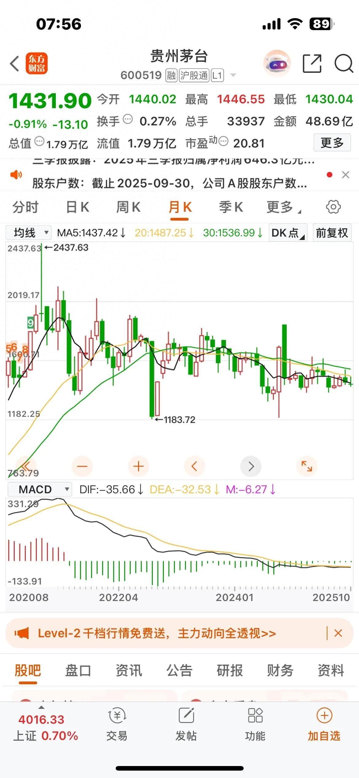 • 场景:隆基股份在下跌过程中,总会时不时拉出涨停,比如2025年10月就有过涨停行情,让套牢者觉得“反弹来了”;茅台也多次在1400-1500元区间出现小幅反弹,配合“三季报净利润900亿”的消息,制造“反转信号”。