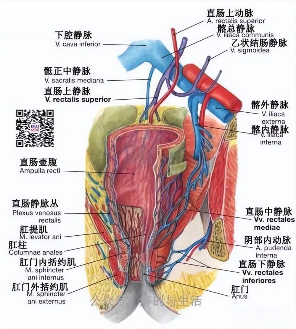 解剖学肛管和外科学肛管的核心区别在于定义范围:前者指齿状线到肛缘的固有部分(长约2-3cm),后者则从肛缘向上延伸至肛管直肠环平面(长约4cm),包含了末端直肠。解剖学肛管是形态学概念,强调胚胎来源(外胚层)和皮肤样结构,其内壁为鳞状上皮,是痔、肛裂等疾病的好发部位。外科学肛管是功能学概念,以耻骨直肠肌和括约肌的附着为界,更关注其控便的临床意义,是手术(如直肠癌根治术)的重要解剖标志。简单说,外科肛管比解剖肛管“长”了约1.5-2cm,多出的部分正是直肠末端。这种划分让医生在手术中能更清晰地界定功能区域,比如在保肛手术中准确判断肿瘤下缘与肛提肌的关系。