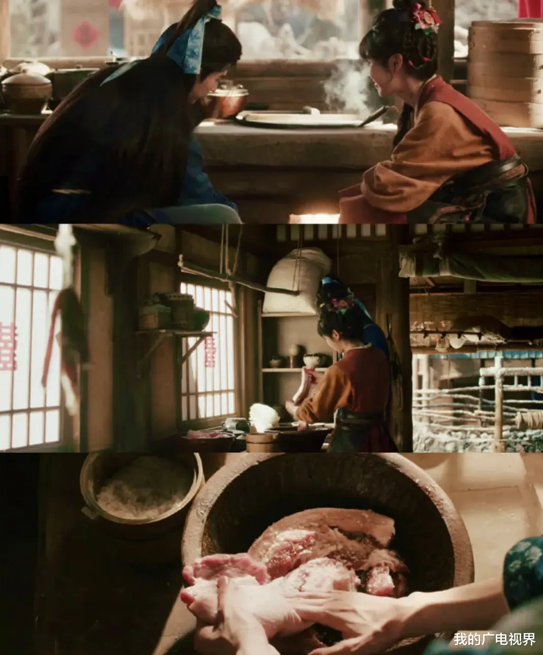 除了戏曲和皮影,《逐玉》里的川渝民俗文化也让很多网友觉得亲切。剧中腌腊肉、挂腊肉等秋冬习俗贯穿剧情,女主角樊长玉操持家业、制作腊味的画面,还原了川渝家庭重视烟火、勤俭持家的生活底色。肥肠面、辣锅子等本土美食出镜,既贴合市井人设,也呈现了川渝民间生活传统。