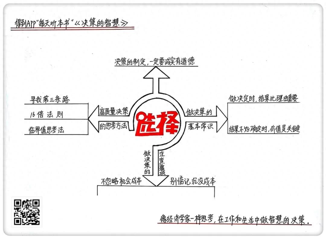 书中介绍了很多方法,我总结了三个有价值的观点,分别是:第一,关于做决策的两个基本知识;第二,两个做决策时的注意事项;第三,做出高质量决策的思考方法。