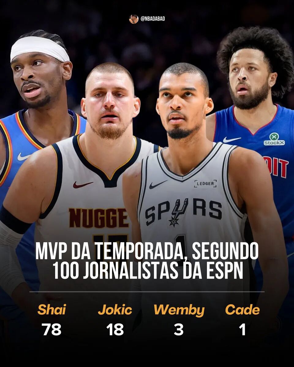 近日,ESPN公布了本赛季第二次MVP模拟投票结果,亚历山大以总得分930分断档排在第一位,紧随其后的是约基奇、坎宁安、文班亚马、东契奇。