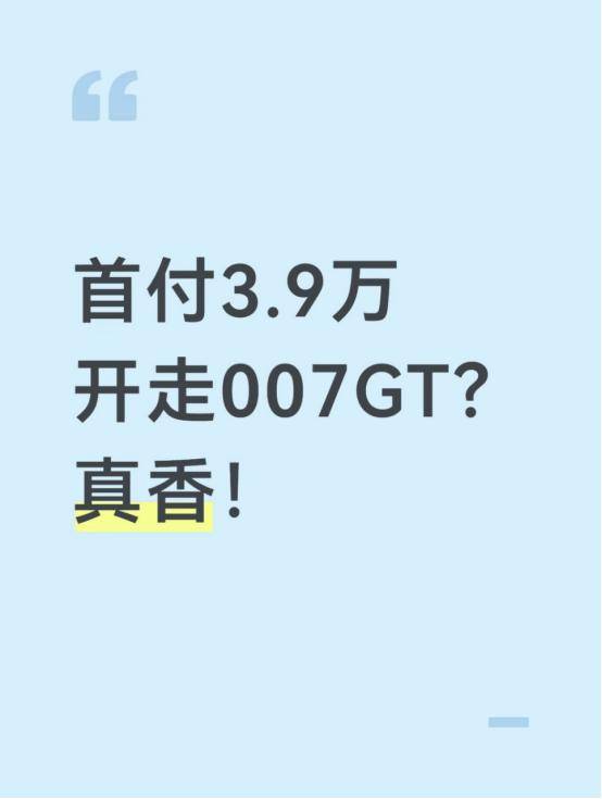 首付只要3万9出头,就能把帅气的007GT开回家