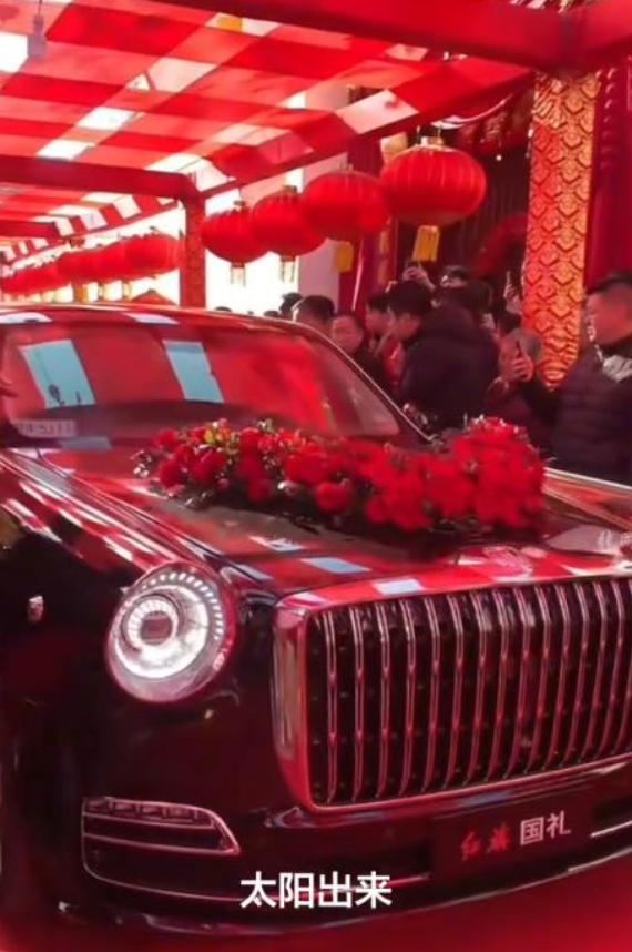 另外一个细节,就是豪车“红旗国礼”当婚车!