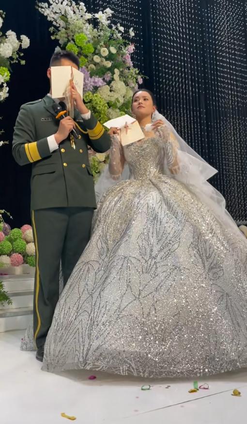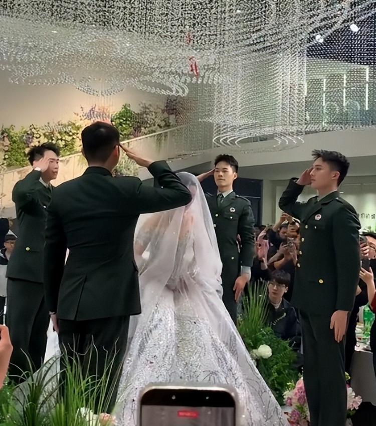 不仅如此,在披完头纱之后,还庄重的敬了一个礼,足见大家对于这场婚礼的“重视”。