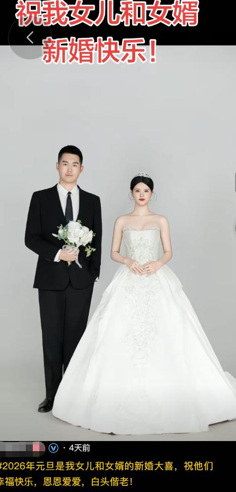 查看下老丈人的社媒账号,1月3日的时候,晒了一张女儿与女婿婚礼的照片。
