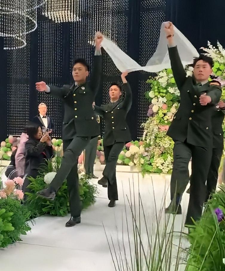 伴郎团,都是出色的护旗手出身,在张自轩婚礼时,他们穿着统一的正装。