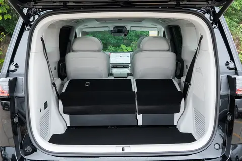 作为MPV的立身之本,空间表现自然不容忽视。在满员七座的状态下,26款岚图梦想家 PHEV的后备厢仍能提供348升的标准容积,足以轻松放下三到四个28寸的行李箱,解决了传统七座MPV第三排启用后行李空间局促的尴尬。当需要装载大件物品时,第三排座椅支持50:50比例电动放倒,放倒后容积可扩展至2700升,实用性极强。