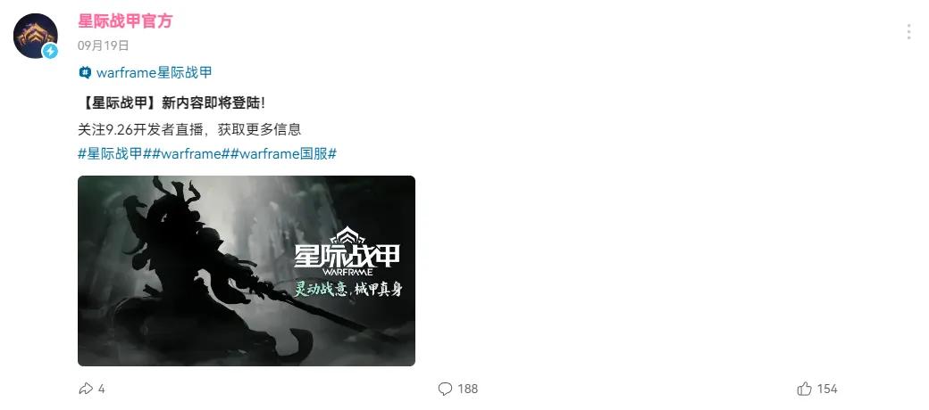 10月14日,DE推出面向中国玩家的“开发者互动日记”栏目,由创意、社区等团队成员出镜交流。官方表示该栏目将长期更新,用于向中国社区展示开发进展并回应玩家反馈。这意味着《Warframe》开始以固定形式建立与本地玩家的沟通机制,而不仅依赖版本公告或临时访谈。