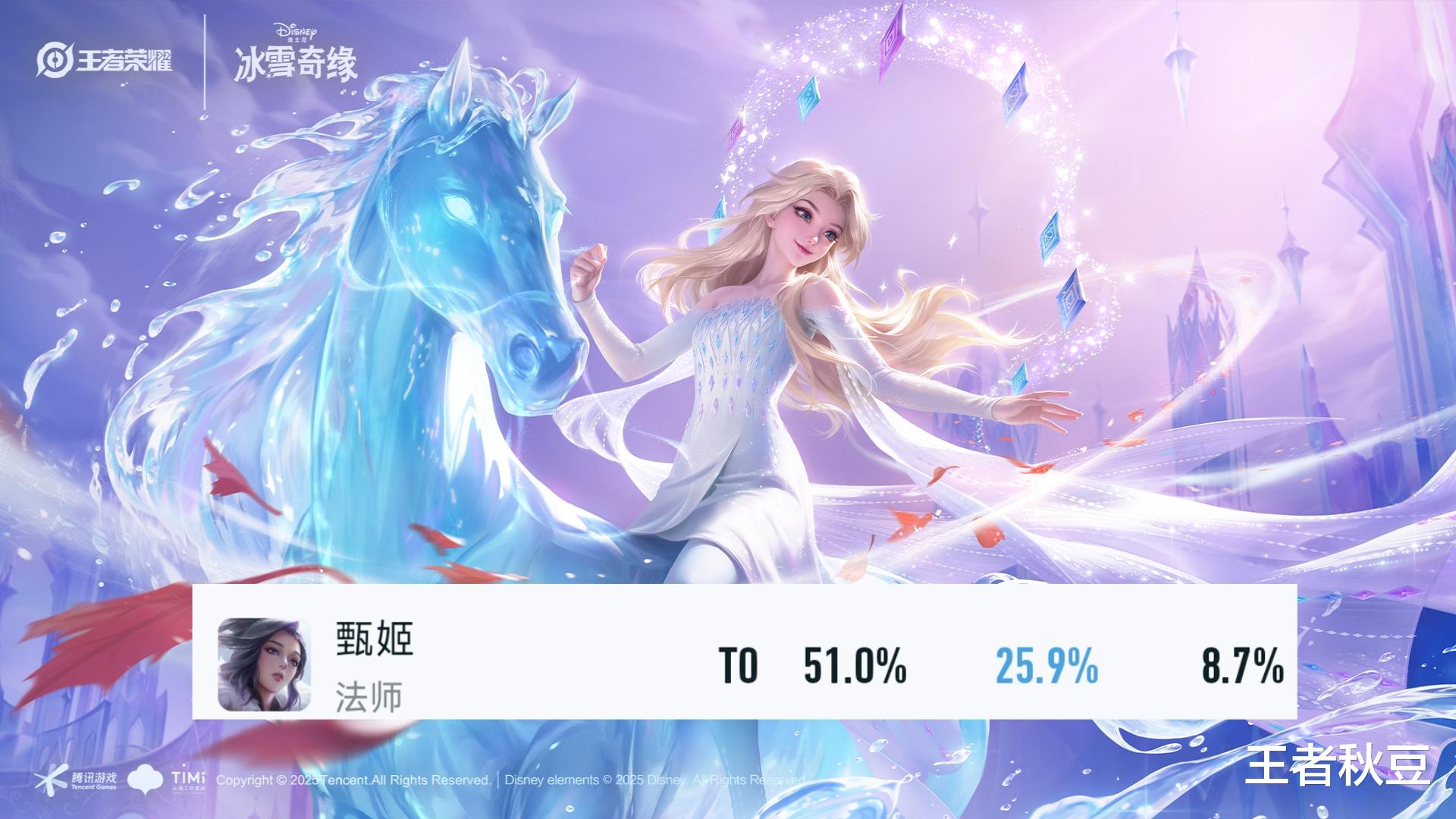 甄姬是顶端排位中唯一一位热度T0的中路法师,登场率25.9%,顶端局登场率法师第一,胜率也有不低的51%,上手难度低,完全是一位轻松上分的法师选择。