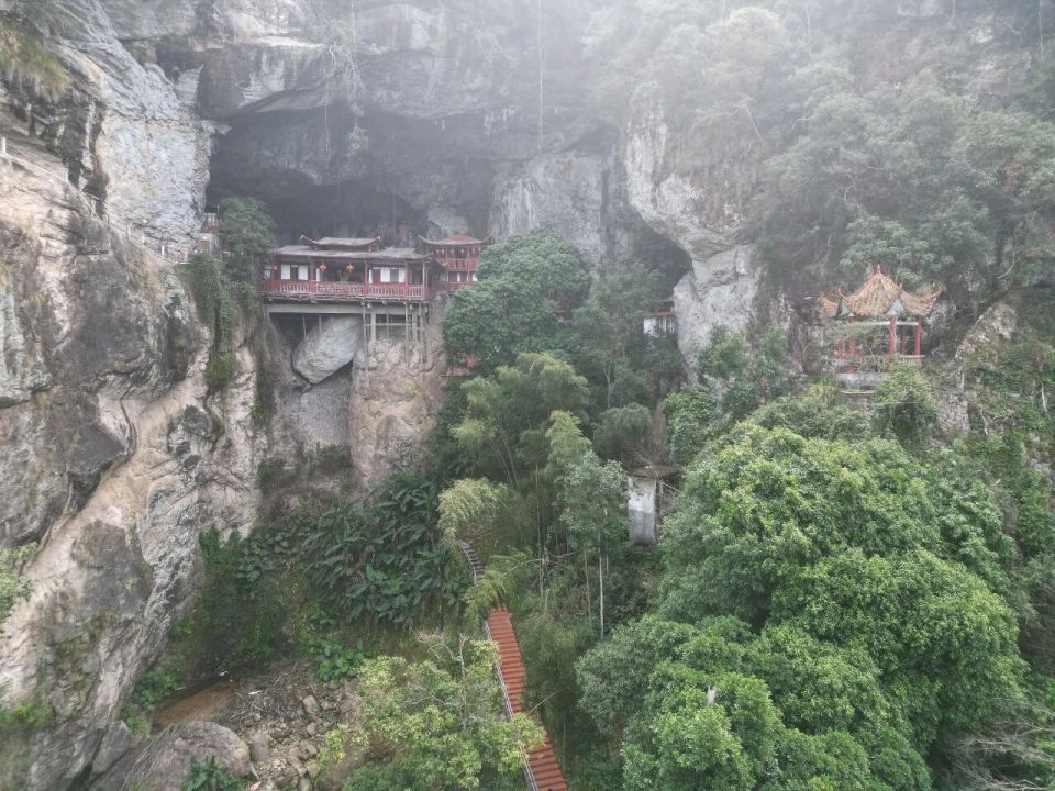 说起悬空寺,大家想起的大多是山西大同的恒山悬空寺,其实在中国的大江南北,悬空寺并不少见,在“八山一水一分田”的福建省就藏着多座悬空寺,而永泰方广岩是其中最知名的一座。宋庆历三年(公元1043年),邑人黄非熊在山下筑室读书,结合洞内景致作十景诗,使方广岩名传遐迩。到了明朝,方广岩扩建为寺,后又增建天泉阁,逐渐形成了今天的基本格局,但毕竟是在湿热多雨的福建深山中,木质建筑难以长期保存,现存的方广岩主要为清代建筑。