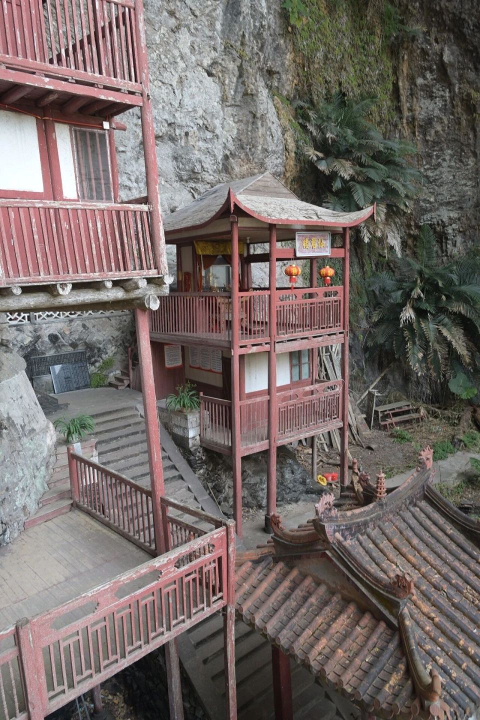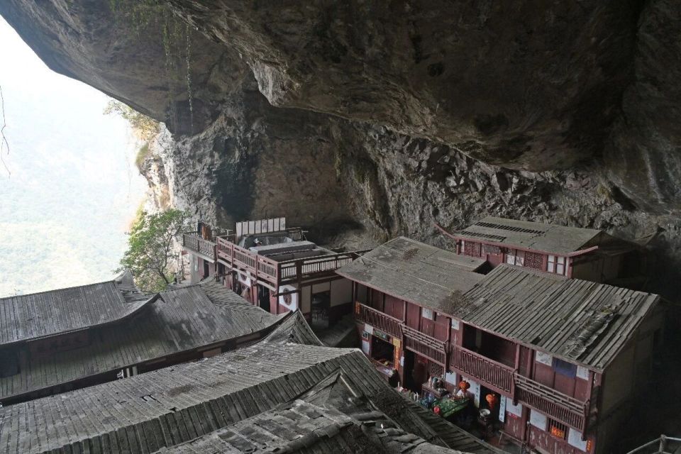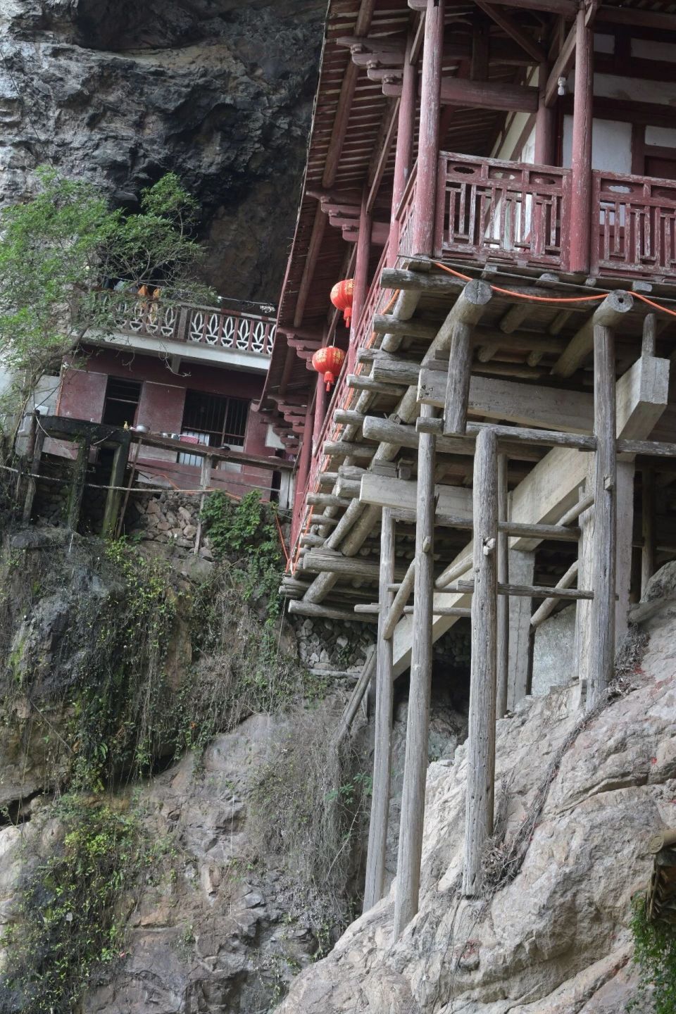 方广岩寺藏身于巨大的岩洞中,山岩为瓦,巨石为基,杉木支撑,楼阁耸立,就这样屹立于岩壁之间数百年了。