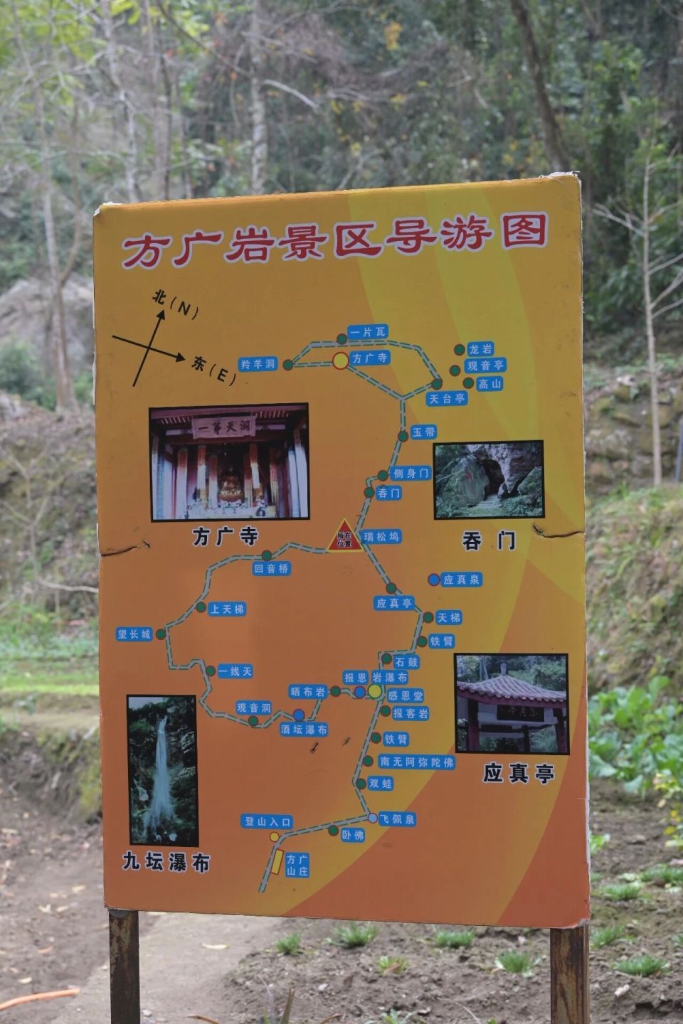 景区地图如上,一直到“吞门”之前是看不到方广岩的,过了“吞门”之后,豁然开朗,方广岩突然就出现在了眼前。