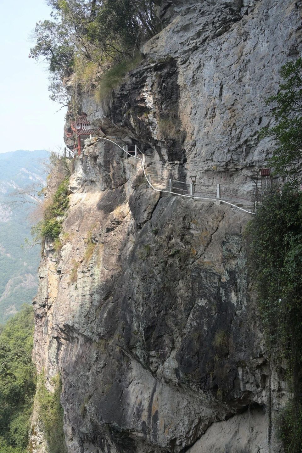 从寺中放眼望去,可见来时的吞门和古树,亦可见崖壁上还有条小路通向山间凉亭,可惜现在小路已经禁止通行,所以不能从山岩上的角度俯瞰方广岩寺。