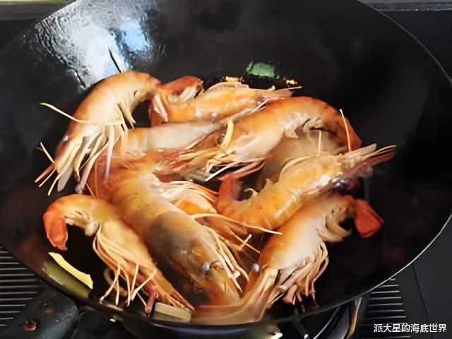 3、锅里油热,放姜,蒜暴香,放入罗氏虾.
