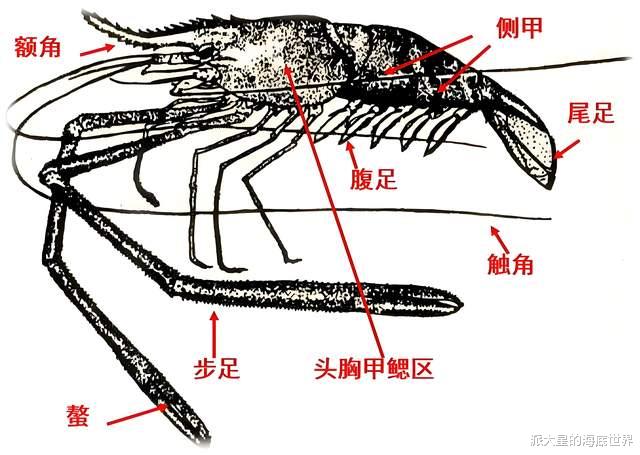 体节与外壳:全身共有20个体节,其中头部5节,胸部8节,腹部7节。头胸部粗大,由一个外壳包围,腹部自前向后逐渐变细。