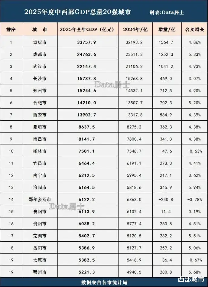 2025年,榆林GDP达到7501亿元,继续稳居中西部非省会GDP第一位,且跻身全国前50强。