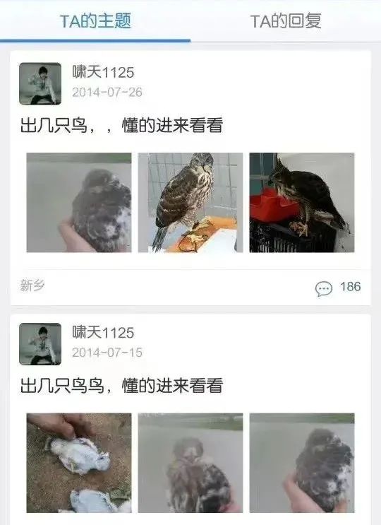 他曾在贴吧、聊天群多次发布兜售野生动物的消息,还能准确说出猎物的名称。