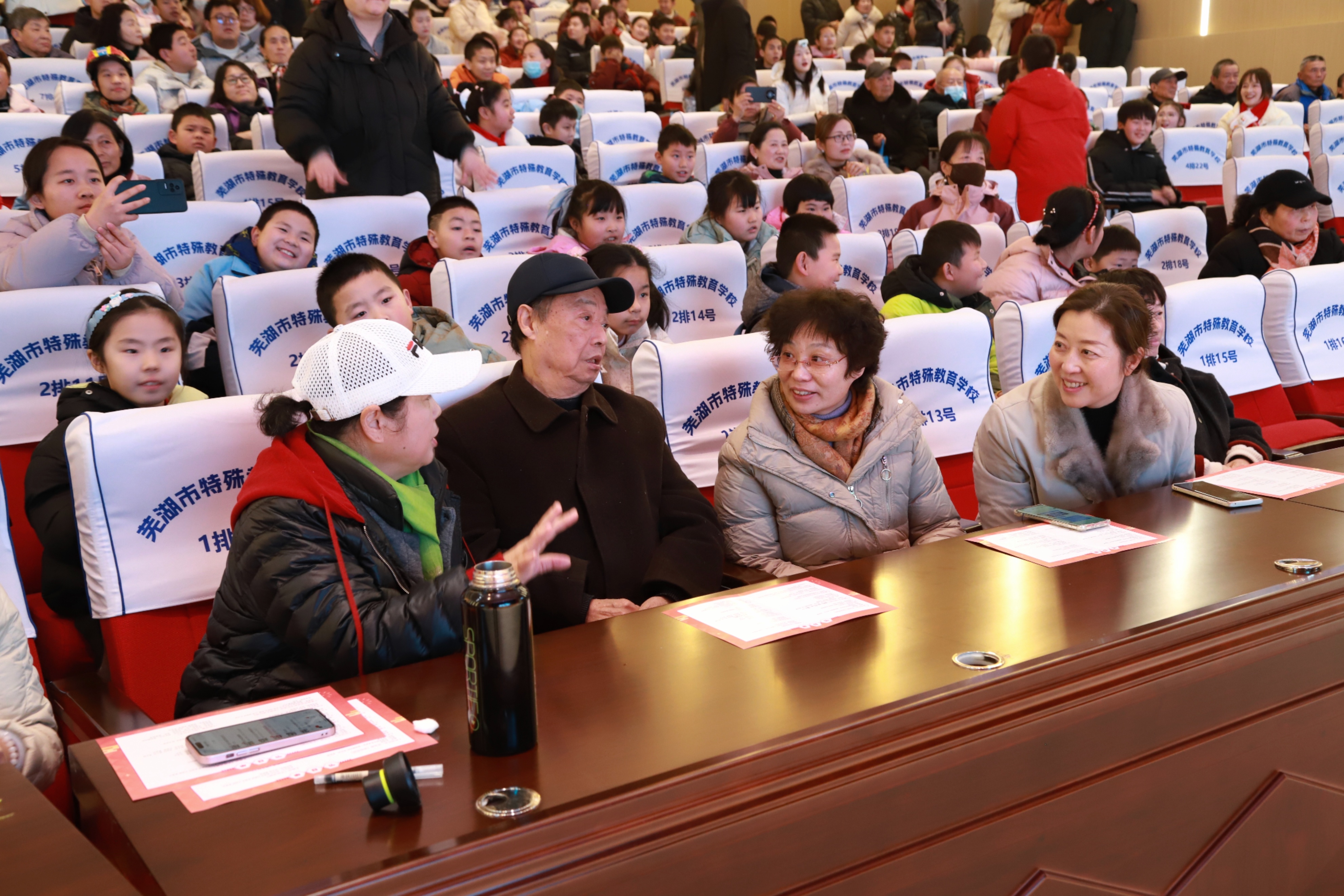 当日,联欢会在热烈的氛围中拉开帷幕。芜湖市特殊教育学校党总支朱艳书记、徐蕾校长、江芹副校长、徐金鸣副校长,以及群众艺术协会相关领导出席活动,与师生、家长、艺术家们欢聚一堂,共迎新年。