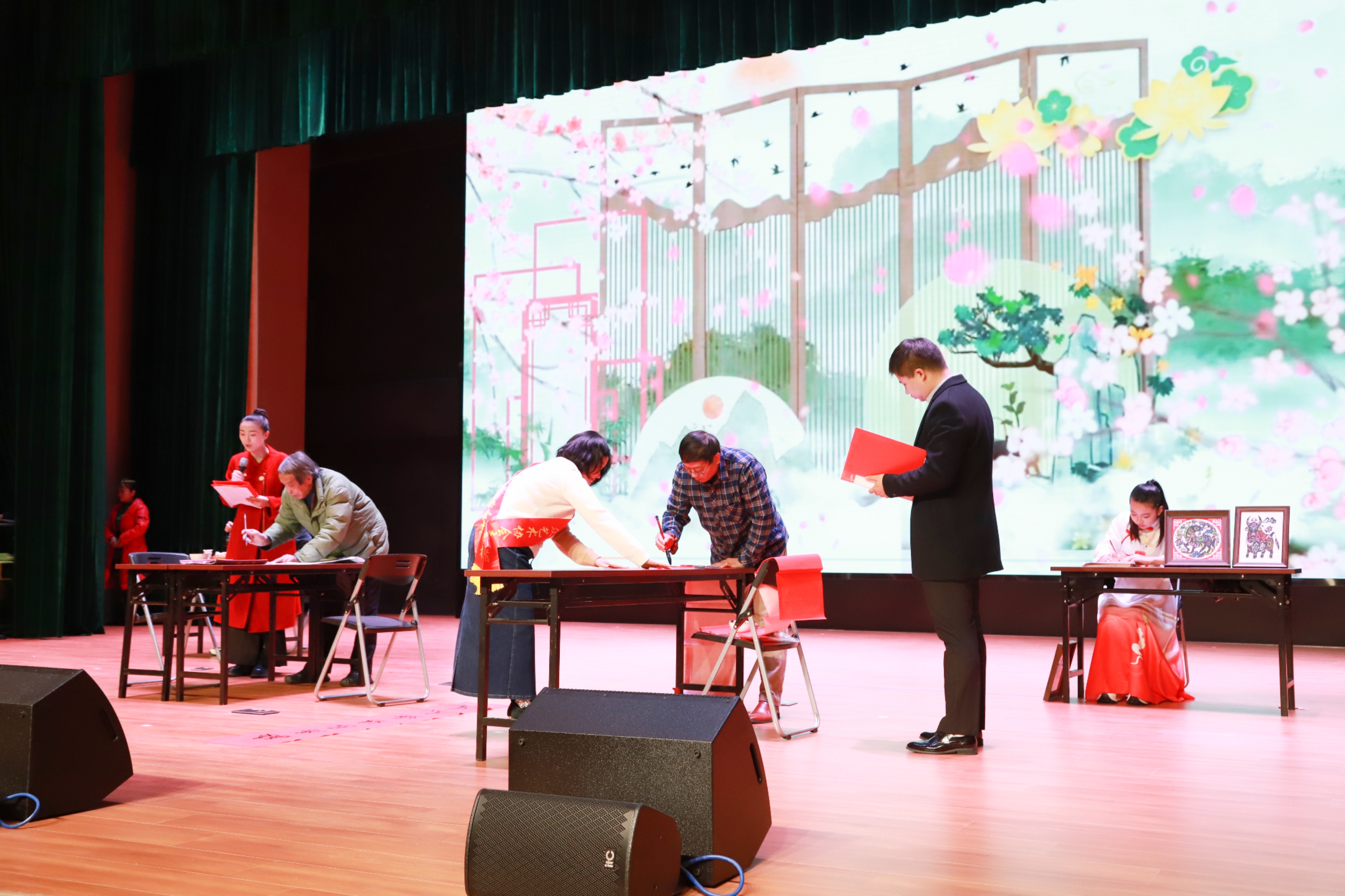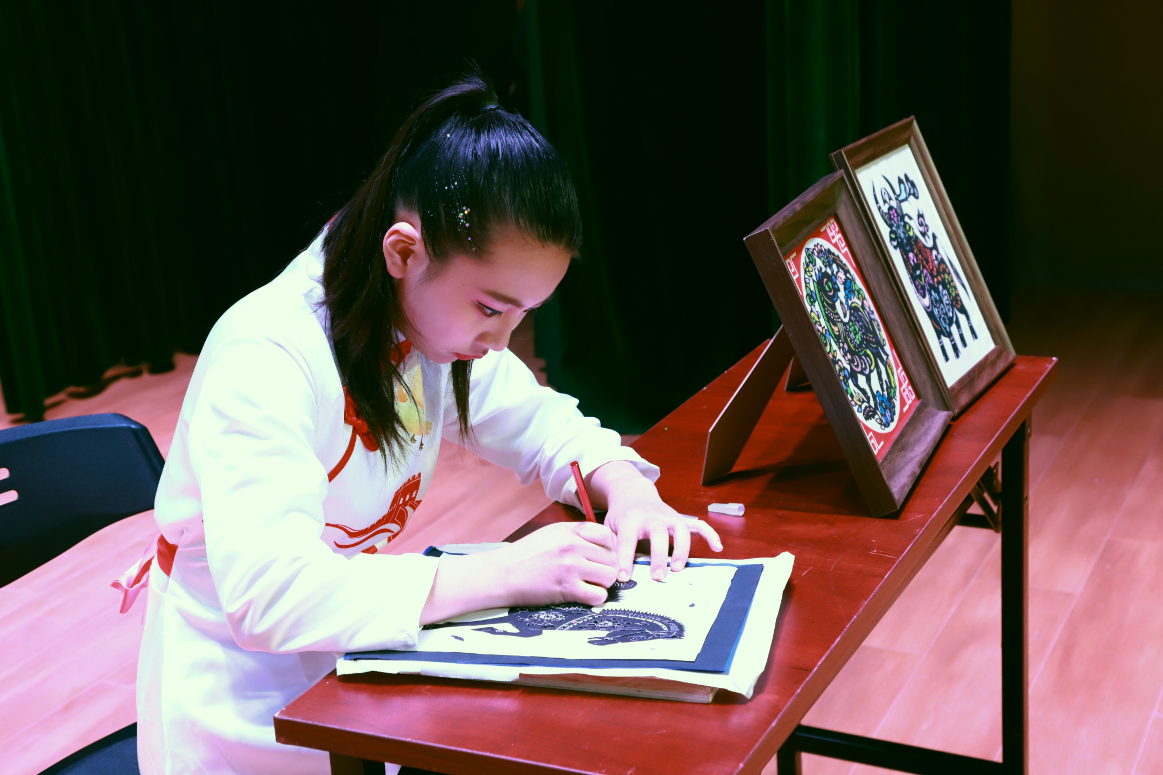 最具文化底蕴的环节当属“四艺流芳”——集刻纸、茶艺、书法、国画于一体的传统文化展示。书法家张强现场挥毫,为学校书写春联;国家一级美术师画家洪明道即兴创作骏马图,寓意学校“马到成功”。特殊教育学校家金刻纸艺术社团的学生们在张家金老师指导下,展示精湛的刻纸技艺;融茗茶艺社的学生则表演了优雅的茶艺,诠释了中华茶文化的深厚内涵。