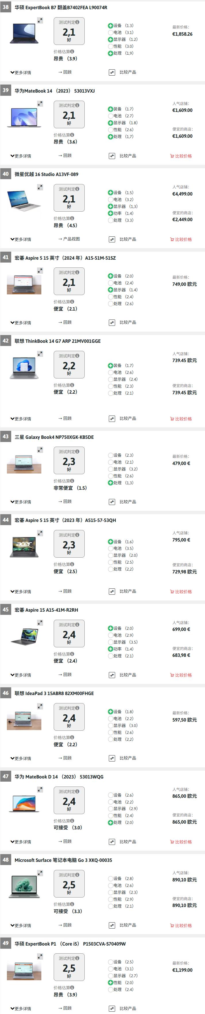 您正在为家庭寻找一台性能强大且接口丰富的电脑吗?或者您经常外出,需要一台紧凑、便携且电池续航能力强的电脑?德国专业测试机构实测 69 款笔记本电脑,其中 27 款获评优秀,22 款获评良好。尤其令中国人欣慰的是:49 款优良笔记本电脑中,29 款来自中国品牌。为了帮您做出购买决策,现发布榜单如下: