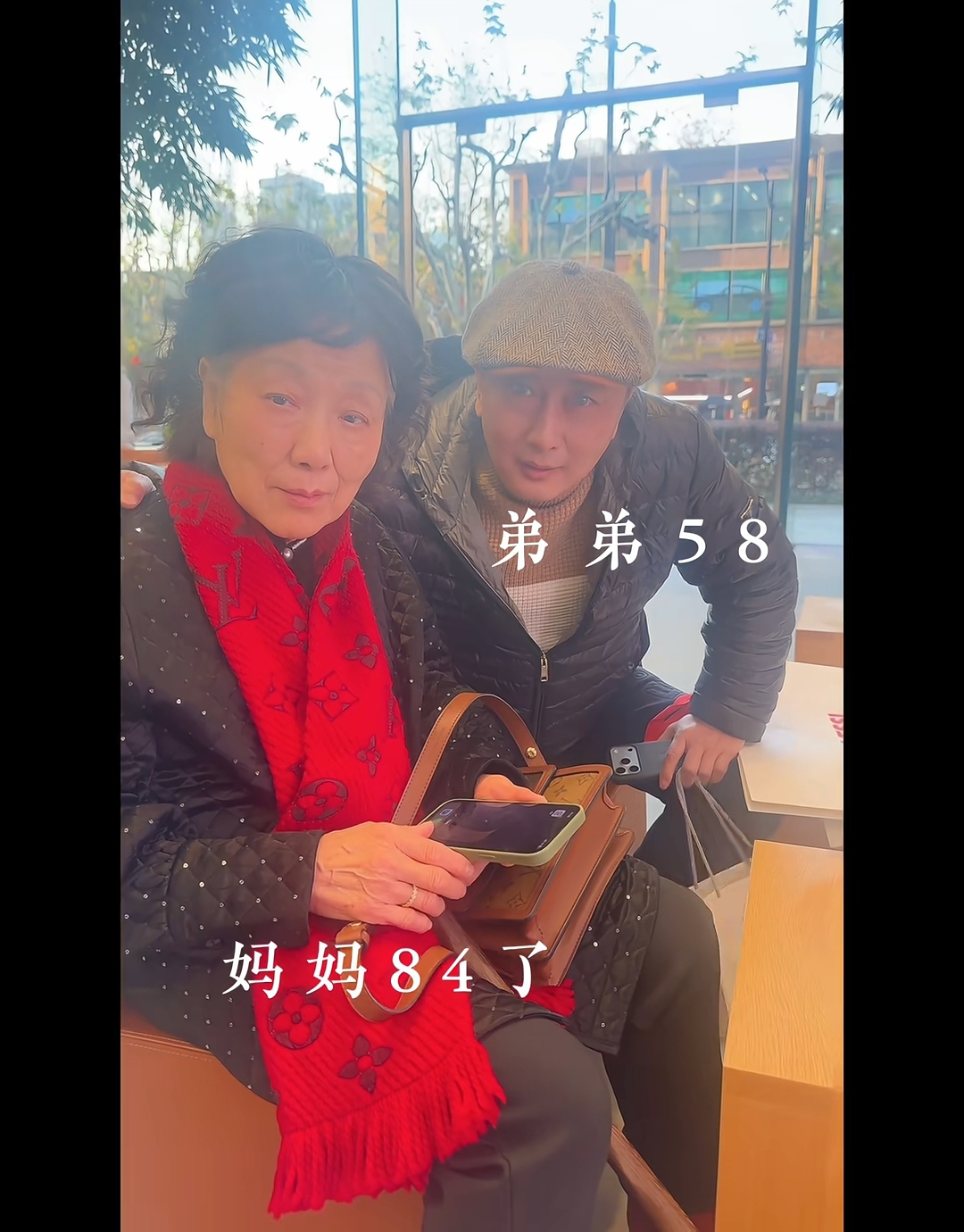 李颖的妈妈现在跟着她弟弟生活,李颖弟弟今年58岁,他们一家三口有些比实际年龄要显年轻的外形,李颖妈妈穿着黑色长袄,戴着红色围巾,精神看着是真好,镜头里李妈妈还在用智能手机,八十多岁还是耳聪目明的,身体保养得很好。